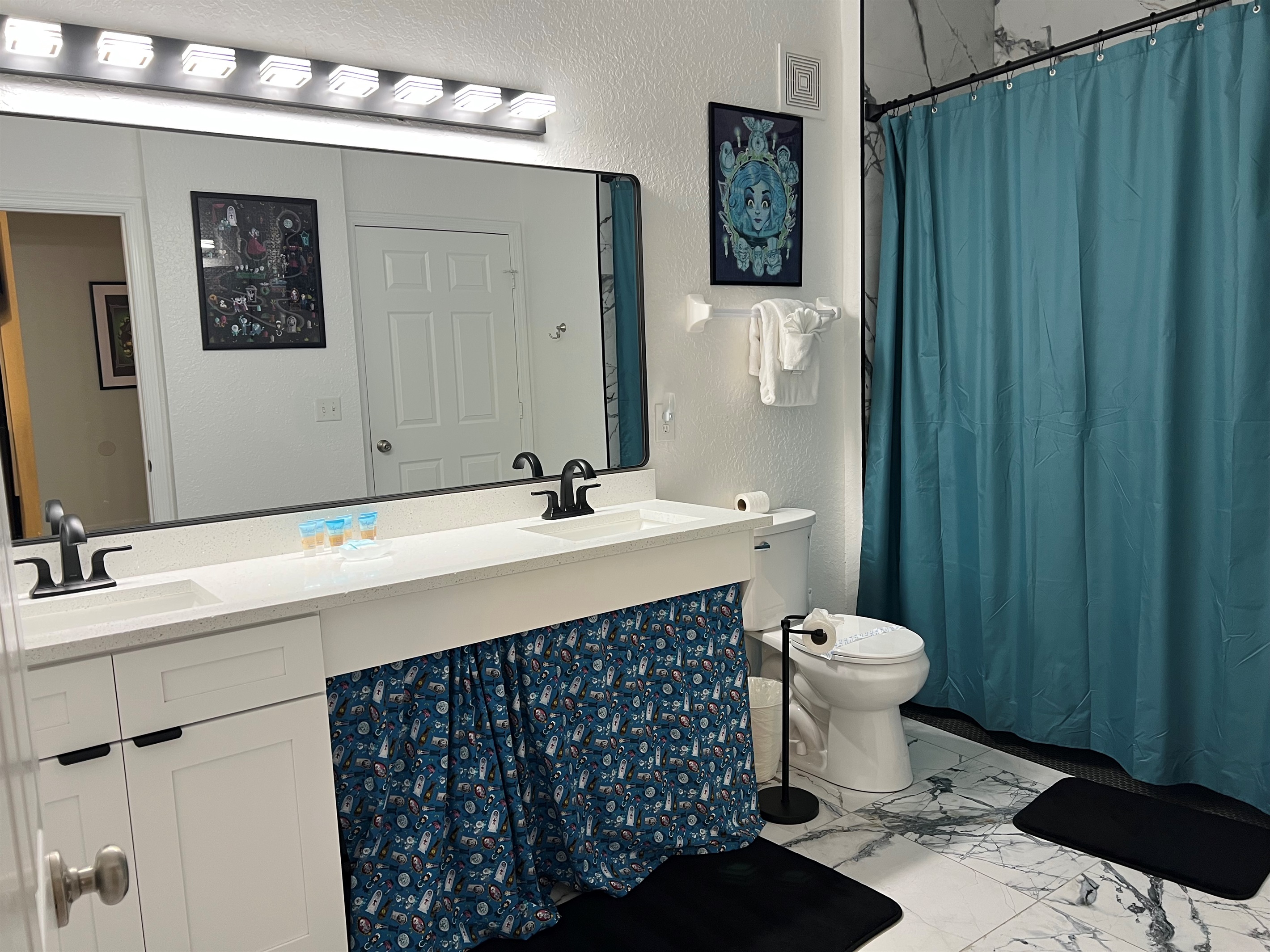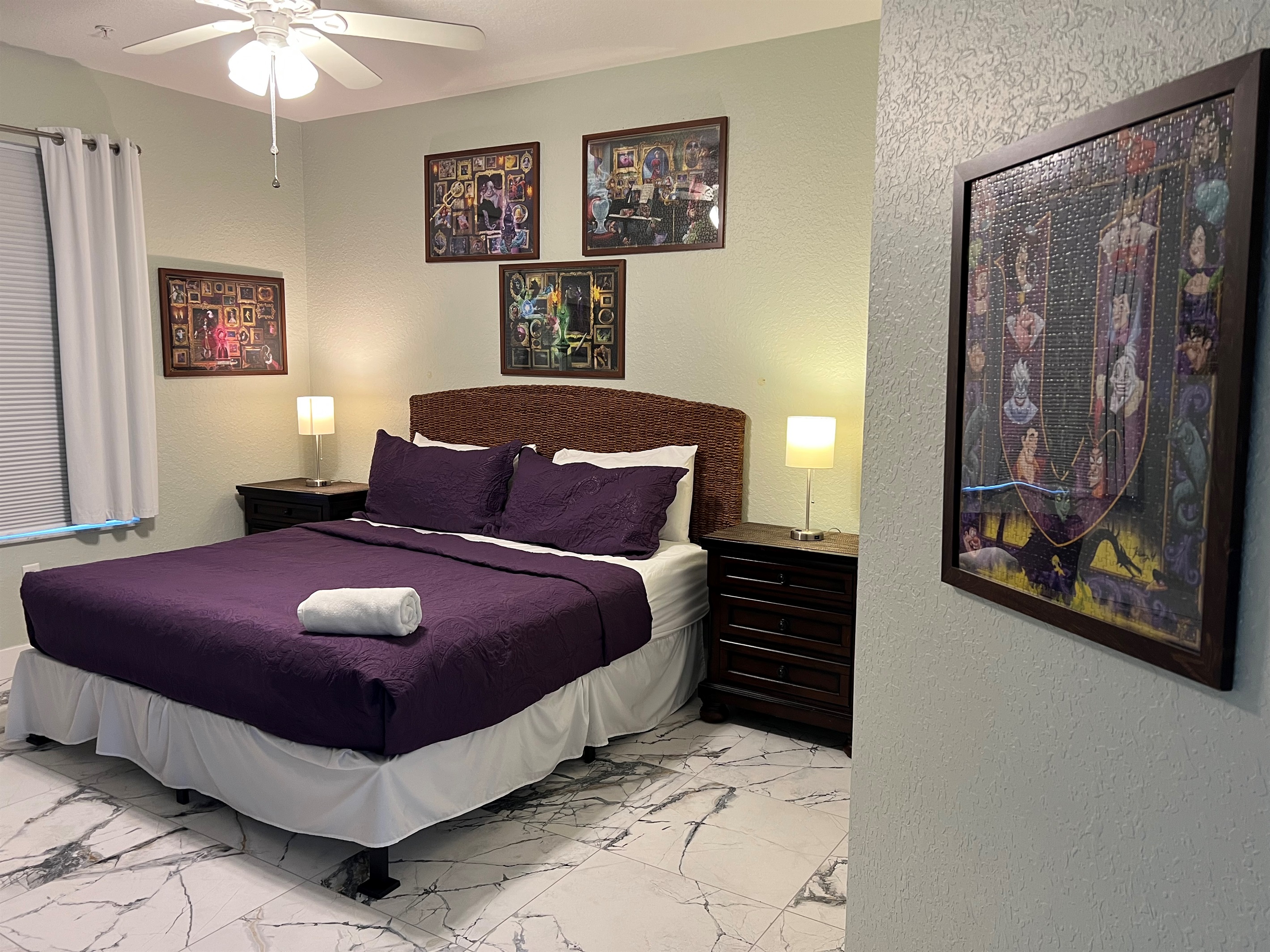 3 Bedrooms • 2 Bathrooms 2 Baths • Sleeps 1-8Welcome to Papaya Place, where you'll find all the creature comforts of your own home. This 3 bedroom, 2 bath condo is a short walk to the resort pool and clubhouse, yet just far enough away for peace and quiet. From the moment you walk in, you'll feel relaxed in space that works for the entire family. The kitchen is well stocked to prepare whatever meals you choose. One suite is furnished with two queen beds and has its own private bath. The other suite has a king bed and adjoins to the second bath with a walk-in shower. The second bathroom can also be accessed through the hall and is directly across from the children's Mickey room. The Mickey room has two twin beds with a pull-out trundle. For your convenience and use are a wagon to unload/load your vehicle of luggage and groceries, or pile in your towels and pool supplies for your short walk across to the pool. There is also a highchair, two strollers and portable crib for your little ones. Access to all of Windsor Hills amazing amenities is included with your rental. Windsor Hills Resort is a gated community that is approximately 3 miles from Walt Disney World. You can't get much closer than that without staying on Disney property!